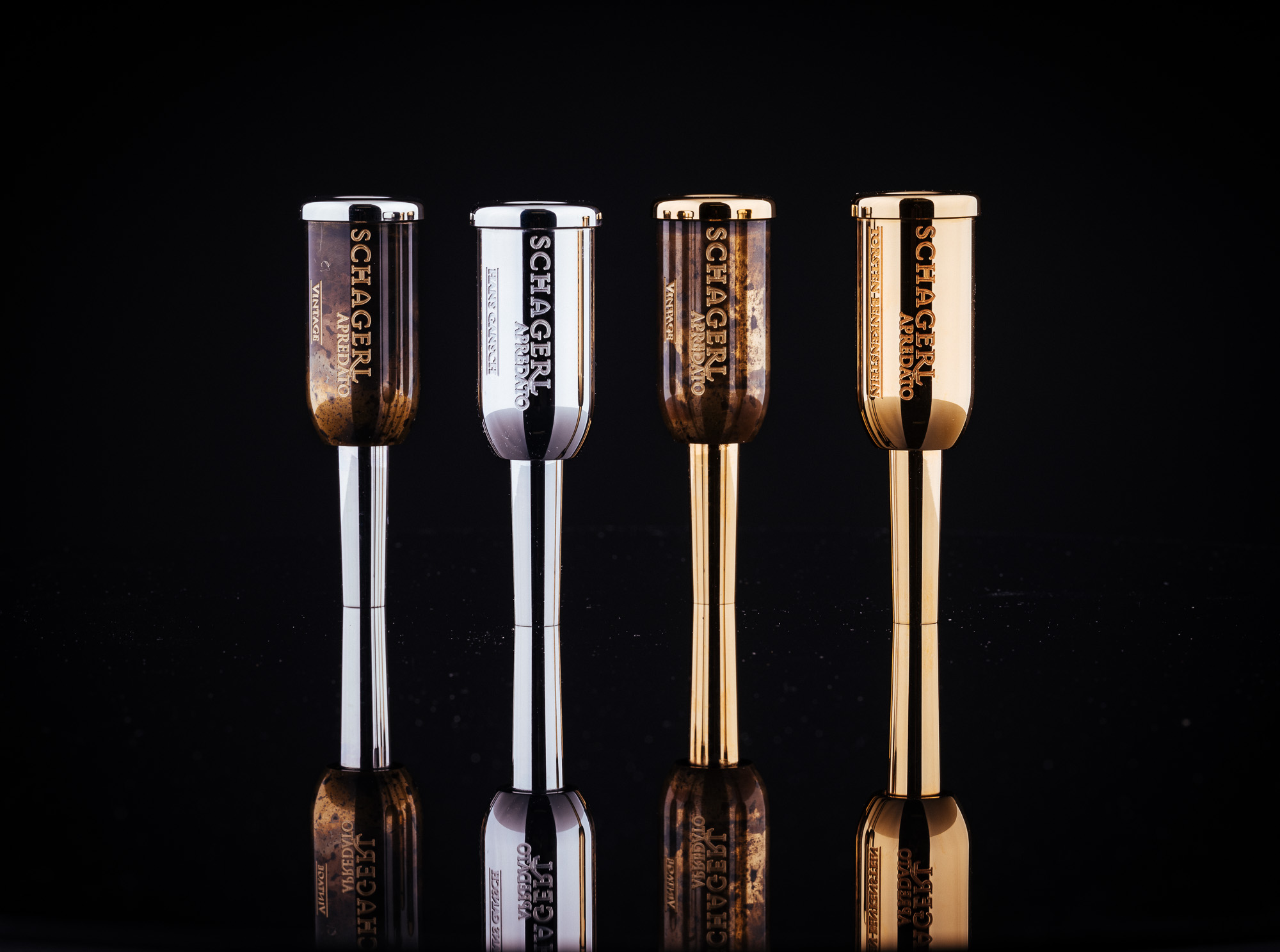 Die Mundstücke sind in allen gängigen Größen direkt im Musikhaus Schagerl erhältlich. Auch ihre eigenen Mundstücke können in ein „Apredato“ umgebaut werden. Die Ansprache und Klarheit des Tones wird durch die Veränderung des bestehenden Mundstücks nicht beeinträchtigt.